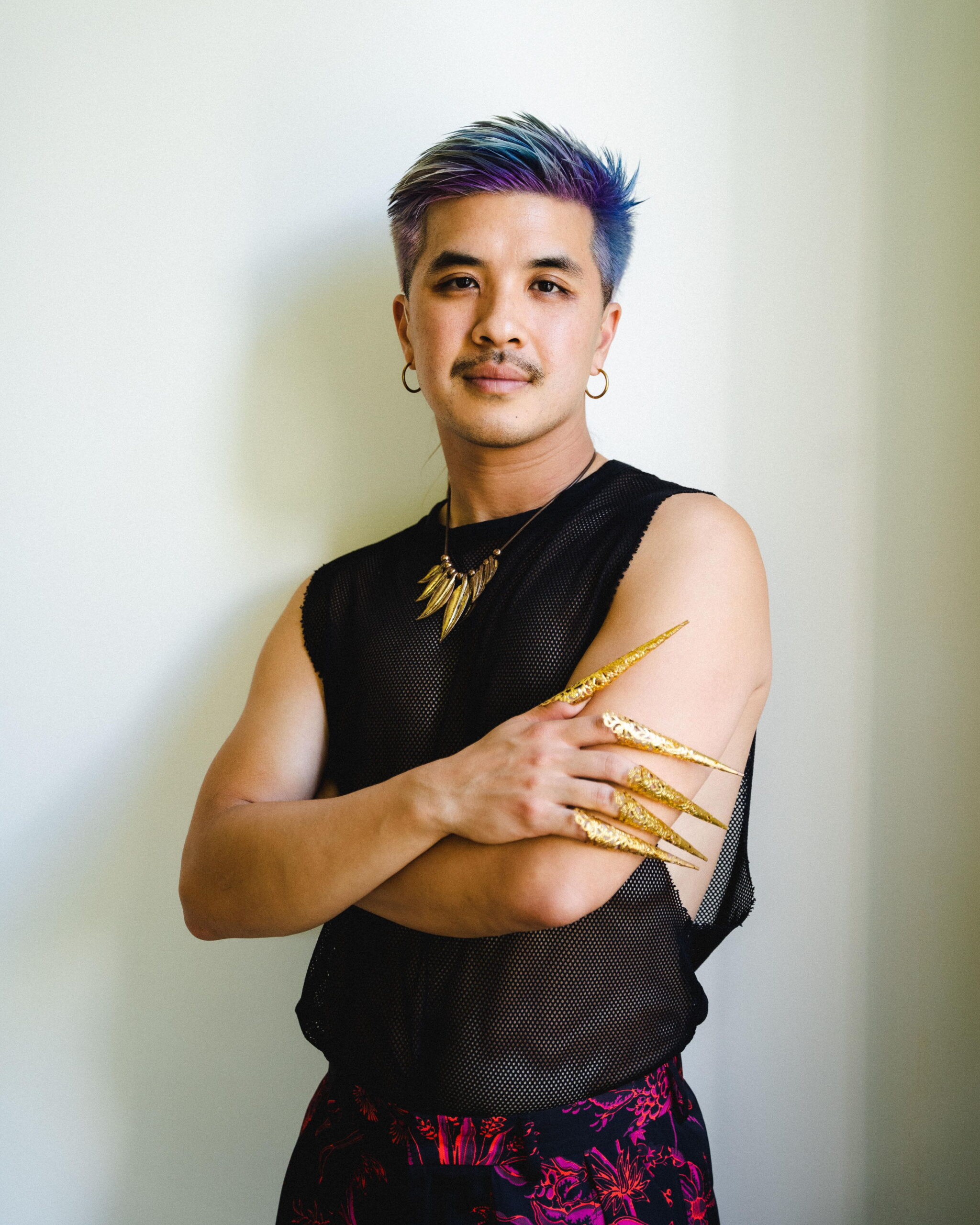 Eric Leong (iel/il) est un artiste queer d’origine chinoise et brunéienne qui se produit sous le nom de Komodo. Son parcours artistique a débuté par plus de dix ans de formation en piano classique au Conservatoire royal de musique, avant d’évoluer vers une pratique autodidacte de la danse, incluant la salsa, le voguing, le whacking et le burlesque. Fondateur de Paifang, une série d’événements culturels queer dans le quartier chinois de Montréal, sa pratique artistique est profondément ancrée dans la communauté et explore les thèmes du lien intergénérationnel, de la queerness et de l’identité diasporique.